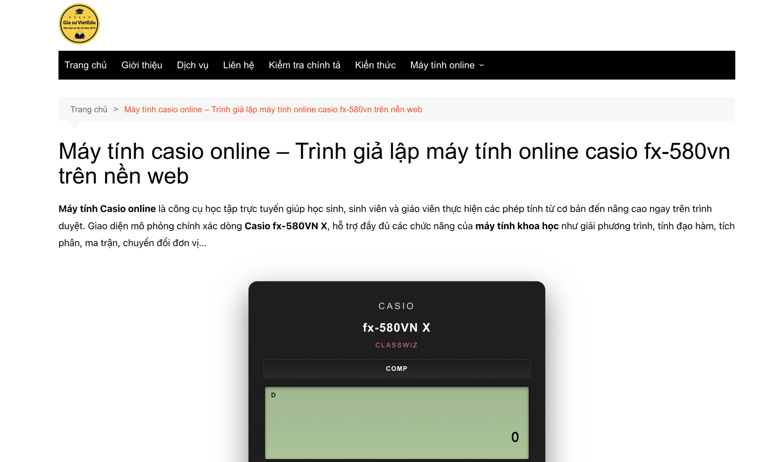 Đặc biệt trên giasuvietedu.com.vn được tích hợp các chức năng miễn phí như máy tính fx-580 giả lập, tính điểm trung bình môn,… chuẩn xác và nhanh chóng.