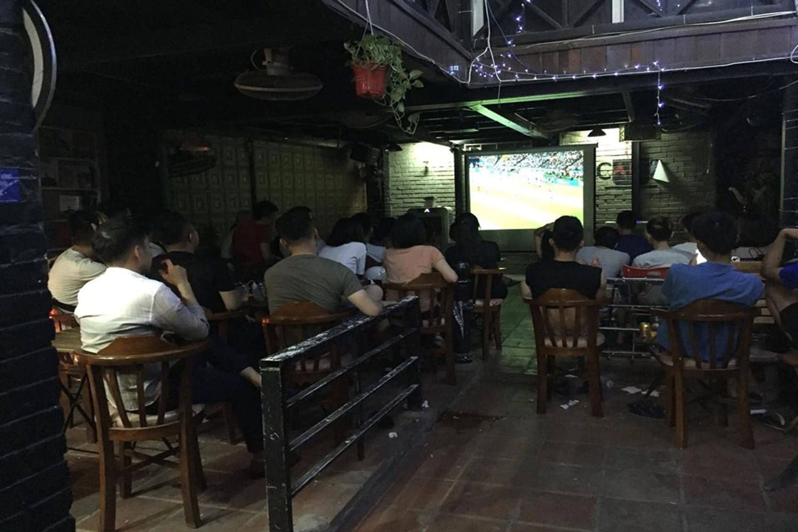 Màn hình chiếu siêu lớn cho bạn hòa mình vào không khí sôi động của đêm bóng cùng người hâm mộ. Café Bắc Kỳ không chỉ phát sóng trực tiếp các trận đấu của đội tuyển Việt Nam mà còn thường xuyên tổ chức các buổi theo dõi bóng đá quốc tế hấp dẫn, thu hút đông đảo người hâm mộ bóng đá.